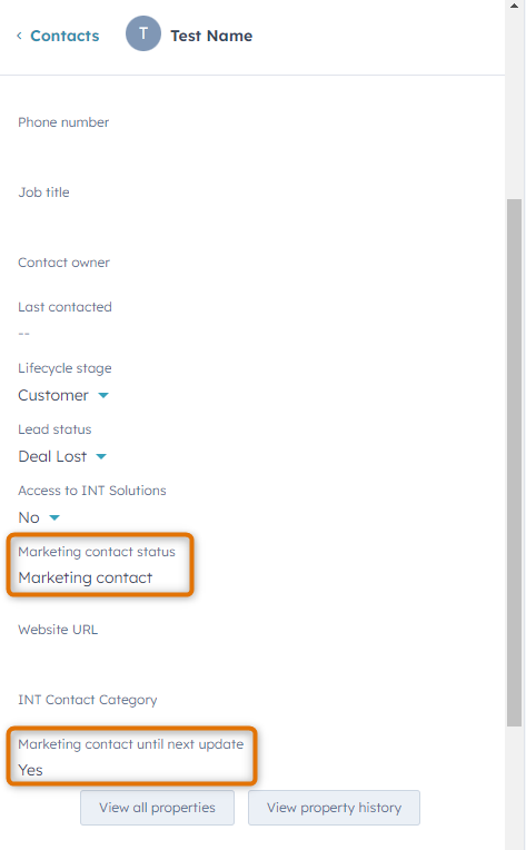 After changing a contact's status to non-marketing, the Marketing Contact Until Next Update property will be populated with a Yes, to indicate that it is still currently a marketing contact but will be updated to a non-marketing contact on the next update date.